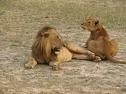 ![]() Pareja de Panthera leo azandica en el parque nacional de las Cataratas Murchison. | ||