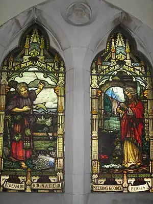 En la Catena Aurea de Santo Tomás de Aquino, recopila los comentarios de algunos de los Padres de la Iglesia sobre este pasaje,[7] que señalan que, al igual que el tesoro escondido en el campo, el Evangelio es gratuito y está abierto a todos, pero para poseer verdaderamente las riquezas celestiales, hay que estar dispuesto a renunciar al mundo para comprarlo. Los Padres también identifican que el campo en el que se esconde el tesoro es la disciplina del aprendizaje celestial: