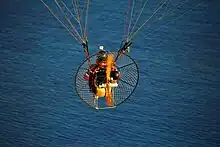 El paramotor es un aerodino de ala fija conformado por un pequeño motor de hélice y un parapente. Es, básicamente, un parapente motorizado. Los parapentes para volar requieren una velocidad de viento relativa de unos 22 km/h, aunque algunos parapentes requieren más velocidad. En el paramotor, esta velocidad se consigue gracias al viento generado en la carrera de despegue que se da por el correr del piloto y la aceleración del motor. Una vez en vuelo, la sustentación aerodinámica se genera gracias al empuje que proporciona el motor, llevado en la espalda del piloto. Mientras que en el parapente se requiere de cierta altura para poder volar (salvo la modalidad de vuelo donde un vehículo en tierra otorga la aceleración necesaria de vuelo al parapente mediante la sujeción con un largo cable de acero que se extiende más y más a medida que se toma altura para luego liberar al piloto para que descienda volando), con el paramotor se puede despegar prácticamente desde cualquier lugar llano.