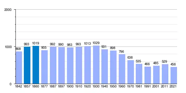 | Gráfica de evolución demográfica de Pareja[6] entre 1842 y 2021 |
