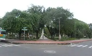 En el centro de la plaza se levanta un monumento en honor a los actores más reconocidos de las gestas independentistas, alusivo a la conmemoración de los primeros cien años de la batalla de Boyacá.