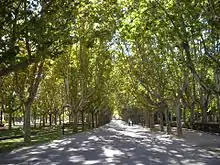 - El acceso principal se lleva a cabo a través del puente de los Cantautores, denominado hasta abril de 2012 puente Trece de Septiembre,[3] en conmemoración del día en que el general Miguel Primo de Rivera se pronunció desde la Capitanía de Barcelona, y que da paso al paseo de San Sebastián, que cuenta con jardines y fuentes de inspiración versallesca.
