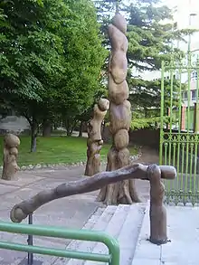 - Grupo escultórico de Teo Calvo: en el acceso principal se encuentra un grupo escultórico realizado en 1994 por Teo Calvo aprovechando un tronco de Olmo.