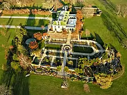 El parque alberga una mansión de 42 habitaciones, diseñada por la firma de arquitectos de Nueva York "Lord & Hewlett".