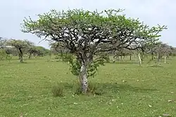El clima de la región es del tipo Cfa de Köeppen, con una temperatura media anual de 23,4 °C y precipitaciones de 1.300 mm. El espinillo es una planta leñosa, con dimensiones que pueden alcanzar los tres metros de altura, espinosa y que produce una pequeña cápsula de un centímetro, donde están las semillas.