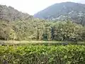 En las faldas de la montaña por debajo de los 1.600 m s. n. m. se observa un complejo bosque medio y semideciduo. Entre esta altura promedio y los 2.500 m s. n. m., se presenta un bosque húmedo de una composición florística muy compleja, con una gran cantidad de variadas epífitas, orquídeas y helechos, en este piso biótico se distingue el yagrumo Cecropia telinitida.