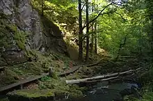 Ha habido muchas discusiones para explicar la formación de los tres cañones principales de Söderåsen (Klova se halla fuera del parque y Skäralid y Odensjön en el parque).[10] La interpretación más reciente es que, durante la formación del horst, aparecieron algunas pequeñas fracturas, que posteriormente fueron profundizadas por la erosión del río.[11] Posteriormente, el macizo sufrió cuatro periodos glaciares que lo erosionaron gravemente.[S 2] Antes del máximo de la glaciación, los valles habrían sufrido una erosión periglaciar, con restos de hielo a nivel local, creando estructuras de tipo circo glaciar. Estos pequeños glaciares pudieron formarse en gran medida porque los valles los protegían de los rayos del sol, aunque todavía no eran tan profundos como hoy.[12] Antes de las grandes glaciaciones, la nieve se acumulaba en los valles, lo que protegía el relieve durante la fase más fría de la glaciación, cuando la capa de hielo cubría toda la región, como ocurrió durante la glaciación de Weichsel.[11] Cuando la capa de hielo se retiró, se reanudaron las condiciones periglaciales y la erosión del valle se reanudó con ella.[11] Esta teoría explica, en particular, la formación del lago Odensjön, cuyo "desbordamiento" se interpreta por estos pequeños "parches" de hielo, que erosionan la roca muy localmente y crean pequeñas morrenas en sus frentes.[11]