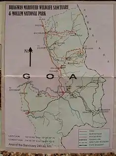 Forma la zona principal de la Reserva natural de Bhagwan Mahavir. El santuario y parque nacional es un área protegida de 240 kilómetros cuadrados, ubicada en los Ghats occidentales del India del Sur, en el taluk de Sanguem, a lo largo de la frontera del estado con Karnataka.