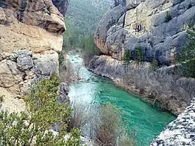 ![]() El río Tajo en su curso alto entre cañones de roca. | ||