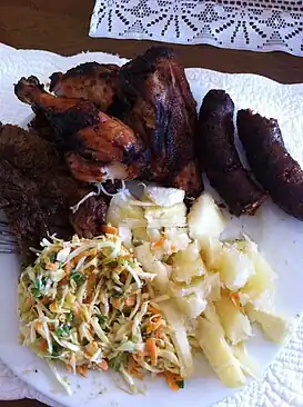 | Ingredientes | diferentes cortes de carne de Res, chorizo, pollo, morcilla y chuleta o costilla de res y de cerdo, yuca, papas aliñadas, hallaquitas, arepa y ensaladas, tostones o plátano a la brasa/horneado. | |