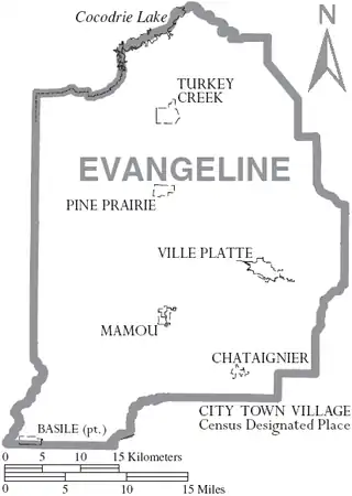 ![]() Mapa de la parroquia de Evangeline.