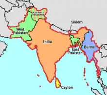 El dominio británico en el subcontinente indio, le concedió la independencia en 1947 y 1948, convirtiéndose en cuatro nuevos estados independientes: la India, Birmania, Sri Lanka, y Pakistán ( incluyendo Bengala Oriental, entre 1971 y Bangladés).
