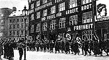 El 30 de enero de 1933 el líder del Partido Nazi, Adolf Hitler, fue nombrado canciller por el presidente Paul von Hindenburg. El KPD y los sindicatos reaccionaron con la convocatoria de una huelga general.[23] No pasó mucho tiempo en que los nazis incluyeron a los comunistas y los socialdemócratas entre sus principales objetivos que eliminar.