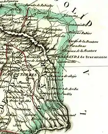 Parte del mapa de 1847 titulado Provincia de Salamanca, parte del antiguo Reino de León, en el que se puede observar la extensión del partido judicial de Peñaranda en el siglo XIX