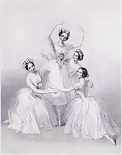- 1845: Pas de quatre, el primer ballet coreografiado por Jules Perrot con música de Cesare Pugni. Fue realizado por Lucile Grahn, Carlotta Grisi, Fanny Cerrito, y Marie Taglioni,[3] aunque solo fueron presentados cuatro funciones a causa de dificultades personales entre las cuatro bailarinas estrella del momento. En la tercera función en el Her Majesty's Theatre en Londres, la Reina Victoria y Príncipe Alberto estuvieron presentes. Desde la primera presentación hasta la última la audiencia y la crítica quedaron sin palabras.[4]