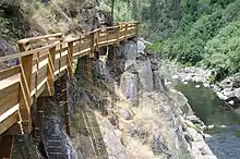 El recorrido se hace sobre una estructura en madera de pino tratado, anclada en hierro en el macizo rocoso, siendo necesario para su recorrido algunos cuidados reglamentarios y medidas de seguridad. El pasadizo también integra tramos de escaleras y algunos en tierra firme.