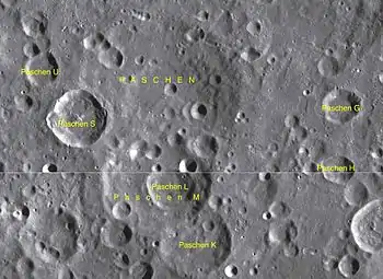 Por convención estos elementos son identificados en los mapas lunares poniendo la letra en el lado del punto medio del cráter que está más cercano a Paschen.