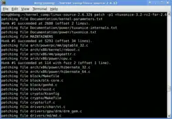 Patch es un comando de Unix y Unix-like que actualiza ficheros de texto de acuerdo a las instrucciones contenidas en un archivo separado, llamado archivo de parche. Este archivo (denominado patch) es un archivo de texto que consiste en una lista de las diferencias entre ficheros y se produce mediante la ejecución del comando diff comparando con el fichero original y actualizándolo con los argumentos de diff.