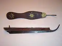 En los Fens los patines se llamaban pattens, fen runners o corredores de Whittlesey. El estribo estaba hecho de madera de haya. Se colocaba un tornillo en el talón de la bota y se atornillaron tres púas pequeñas en la parte delantera para mantener estable el patín. Había agujeros en el estribo para que las correas de cuero lo sujetaran al pie. Las hojas de metal eran ligeramente más altas en la parte trasera que en la delantera. En la década de 1890 los patinadores comenzaron a competir con patines al estilo noruego.