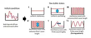 - Turing, A. M. (1952). «The Chemical Basis of Morphogenesis». Philosophical Transactions of the Royal Society of London B 237 (641): 37-72. Bibcode:1952RSPTB.237...37T. doi:10.1098/rstb.1952.0012.