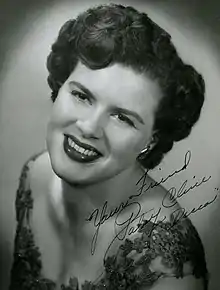 Patsy Cline (Winchester, Virginia, Estados Unidos, 8 de septiembre de 1932 - Camden, Tennessee, Estados Unidos, 5 de marzo de 1963)[1] fue una cantante estadounidense de música country. Icono y parte del sonido Nashville de principios de los años 1960, Cline "cruzó" a la música pop y fue una de las más influyentes, exitosas y aclamadas cantantes country del siglo XX.[2] Falleció a la edad de 30 años en un accidente en el avión privado de su mánager, Randy Hugh cuando volaban desde Kansas City (Kansas) y se estrelló en la localidad de Camden, en el estado de Tennessee, falleciendo además los músicos Randy Hughes, Cowboy Copas y Hawkshaw Hawkins.