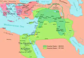 El mayor crecimiento territorial asirio se produjo durante el reinado de Tiglatpileser III (744-727 a. C.), que se expandió por Mesopotamia, Siria, Anatolia y Egipto.[4] Sus reformas maximizaron la eficiencia militar y política permitiéndole establecer las bases del imperio neoasirio. Centralizó el poder debilitando atribuciones a los funcionarios y nombró gobernadores para distribuir la escasa porción de poder que quedaba dentro del imperio.[5] También instituyó un ejército permanente incorporando soldados procedentes de estados vasallos como tributo o cuando el rey asirio lo exigiera.[6] Tras sus conquistas y las de sus sucesores, Salmanasar V y Sargón II en Anatolia y Levante, el imperio entró en una etapa de consolidación y estabilización fronteriza conocida como la Pax Assyriaca.[4] La expansión sobre un gran territorio proporcionó una estabilidad en el poder desconocido hasta entonces y la atención se centró en la expansión de la economía y el desarrollo del imperio. Los asirios tenían muchos estados vasallos que pagaban tributo al imperio y cuanto más productivos y lucrativos eran estos estados, mayor era la recaudación de esos tributos. Por lo tanto, a Asiria le convenía apoyar el desarrollo no sólo de su imperio sino de todas sus áreas circundantes.[7]