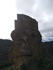 En lo que se refiere al castillo, cuyas ruinas coronan la roca natural sobre la que se asienta todo el conjunto, su labor de vigilancia guardaba estrecha relación con el cercano castillo de Javier. Se conserva parte de la torre mayor, en el ribazo que corona la peña, atestigua tal recuerdo.[3]