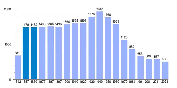 | Gráfica de evolución demográfica de Peñaranda de Duero[3] entre 1842 y 2021 |