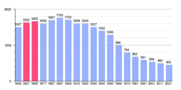 | Gráfica de evolución demográfica de Peñarroya de Tastavíns[8][9] entre 1842 y 2021 |