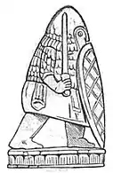 Los artefactos de las Piezas de Lewis poseen 19 peones estilizados con formas y tamaños variados semejantes a lápidas u obeliscos. La mayoría poseen una base hexagonal y dos piezas poseen adornos o grabados.[7][8] El único peón reminiscente del conjunto de piezas de Carlomagno está representado por un pequeño soldado con escudo y casco similar a los nórdicos del siglo XI que rompió el mito de que el conjunto pertenecía en realidad al emperador carolingio, que vivió en el siglo VIII.[9]