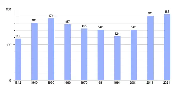 | Gráfica de evolución demográfica de Pedret i Marzà[4] entre 1842 y 2021 |