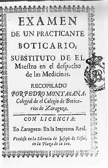 Pedro Montañana fue un farmacéutico aragonés asentado en Zaragoza, Visitador de Boticas del Reino de Aragón,[1] miembro del colegio de boticarios de Zaragoza del siglo XVIII y autor del Examen de un practicante boticario, sustituto del maestro. Esta es una sencilla cartilla farmacéutica de formación de boticarios de la cual se conocen dos ediciones, una de 1728 y otra de 1794.