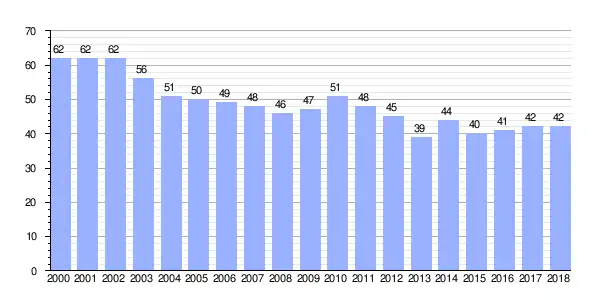 | Gráfica de evolución demográfica de Pedrouzos[3] entre 2000 y 2018 |
