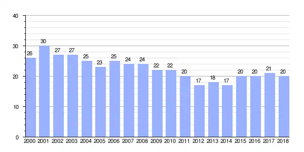 | Gráfica de evolución demográfica de Pegariños entre 2000 y 2018 |