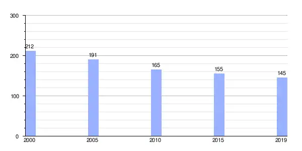 | Gráfica de evolución demográfica de Penarrubia (parroquia) entre 2000 y 2019 |