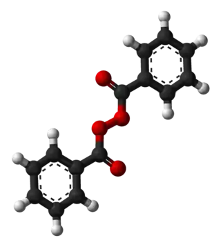 El peróxido de benzoílo es un compuesto orgánico de la familia de los peróxidos orgánicos. Consiste en la unión de dos grupos benzoílo con un grupo peróxido. Es uno de los más importantes peróxidos orgánicos en términos de aplicaciones y la escala de su producción. El peróxido de benzoílo es usado en el tratamiento del acné, como blanqueador de la harina, grasas, cera y la leche en la producción de algunos quesos, iniciador en la polimerización de acrilatos como el cemento dental y otros; en el proceso de curado del caucho; y otros usos.[1]