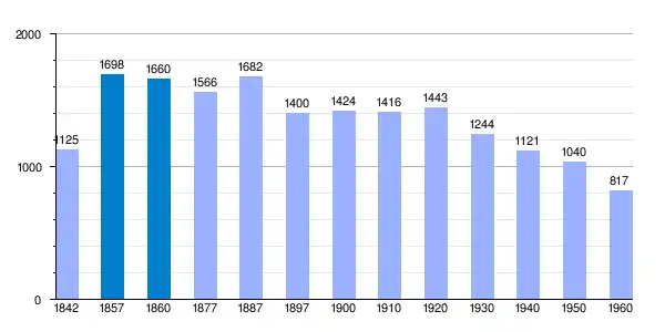 | Gráfica de evolución demográfica de Peralta de la Sal[4] entre 1842 y 1960 |