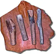 - El yacimiento bretín de Er-Yoh, en Morbihan (Bretaña, Francia) deparó lo que parecía un compresor fabricado con la epífisis de un herbívoro con un trozo de sílex incrustado en un extremo: Semenov, Serguei A. (1981, edición original en ruso de 1957). Tecnología prehistórica. Estudio de las herramientas y objetos antiguos a través de las huellas de uso. Akal Editor, Madrid. ISBN 84-7339-575-1. (página 102 y figura 11-3)
