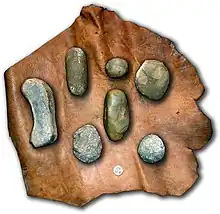 También señalan la existencia de percutores durmientes (pasivos), de los que ya hemos hablado; de piedras con cúpulas de percusión y de guijarros percutidos cuyas cicatrices son insuficientes para considerarlos percutores auténticos - Leroi-Gourhan, André y Brézillon, Michel (1972, reimpresión de 1983). «Fouilles de Pincevent, Essai d'analyse ethnographique d'un habitat magdalénien (section 36)». Gallia Préhistoire. Supplément 07 (CNRS). ISBN 2-222-01479-4.. De hecho, en Pincevent fueron localizados dos percutores, uno bastante pequeño (132 gramos) y otro bastante grande (de 672 gramos), pero dada la cantidad y calidad de industria lítica recogida en este conocido yacimiento, se considera una porción muy escasa (página 276).