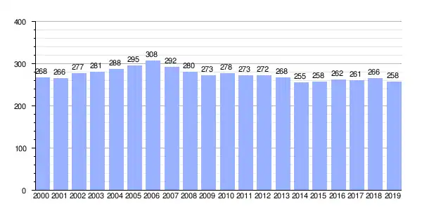 | Gráfica de evolución demográfica de Pereira (lugar) entre 2000 y 2019 |