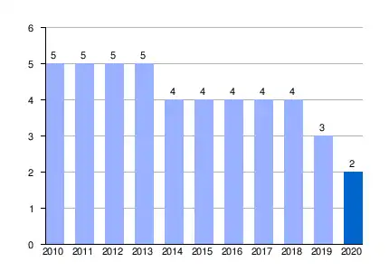 | Gráfica de evolución demográfica de Pereiras entre 2010 y 2020 |