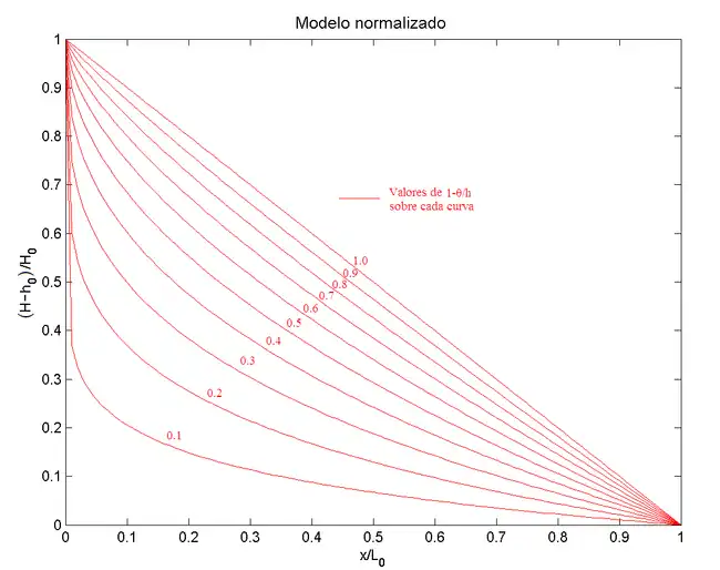 Luego, la expresión normalizada para el perfil de equilibrio (idealizado) de un río es: