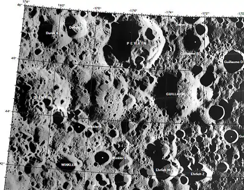 ![]() Entorno de Perkin (localizado en el centro del borde superior de la imagen) |