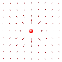 Cuando una partícula cargada se coloca en el espacio, ejerce una fuerza sobre otras cargas que disminuye con la distancia. Por tanto, cada punto del espacio puede asociarse a la fuerza que experimentaría un culombio de carga colocado allí; esta cantidad se llama campo eléctrico (en newton por culombio). Sin embargo, este campo es tanto más importante cuanto que la carga central es elevada. Pero ésta se distribuye sobre la esfera que rodea la carga: cuanto más nos alejamos, mayor es el área de la esfera y más disminuye el carga eléctrica por unidad de área. Sin embargo, el campo de fuerza eléctrica en un punto dado es proporcional a esta densidad de carga superficial : cuanto más densa es la distribución de la carga, más fuerte es el campo. El coeficiente que vincula estas dos cantidades es precisamente : de hecho, si la permitividad del vacío indica la densidad de carga necesaria para generar un campo de 1 N/C, su inverso resalta el campo creado por una unidad de densidad de carga, que, multiplicado por la densidad de carga total, por lo tanto da el campo total generado. Así, el campo eléctrico ejercido por la carga central sobre un punto situado en la superficie de la esfera de radio tendrá la norma: