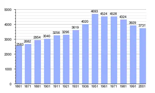 | Gráfica de evolución demográfica de Perosa Argentina entre 1861 y 2001 |