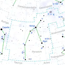 - 40 Persei (o Persei), masiva estrella azul de magnitud 4,98.