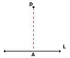 - La proyección ortogonal de un punto P en una recta L es A que se obtiene trazando una línea auxiliar perpendicular a L desde el punto A tal que esta línea pase por P. Lógicamente, si el punto p pertenece a la recta L, coinciden: P = A .
