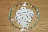 La reacción se realiza con la disolución en ebullición. Después de eso, la sal es neutralizada añadiendo ácido nítrico, precipitando, añadiendo agua fría y filtrando.
