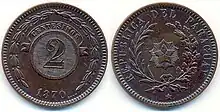| Fracción | 100 centésimos (hasta 1874). 100 centavos (desde 1874). | ||||