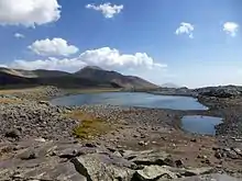 Al pie de la montaña se extienden más de dos mil fragmentos de roca decorados. Se cree que pertenecen al Paleolítico, hace unos 12.000 años, esculpidos en las rocas volcánicas de color negro pardusco expulsadas por un volcán ahora extinto.